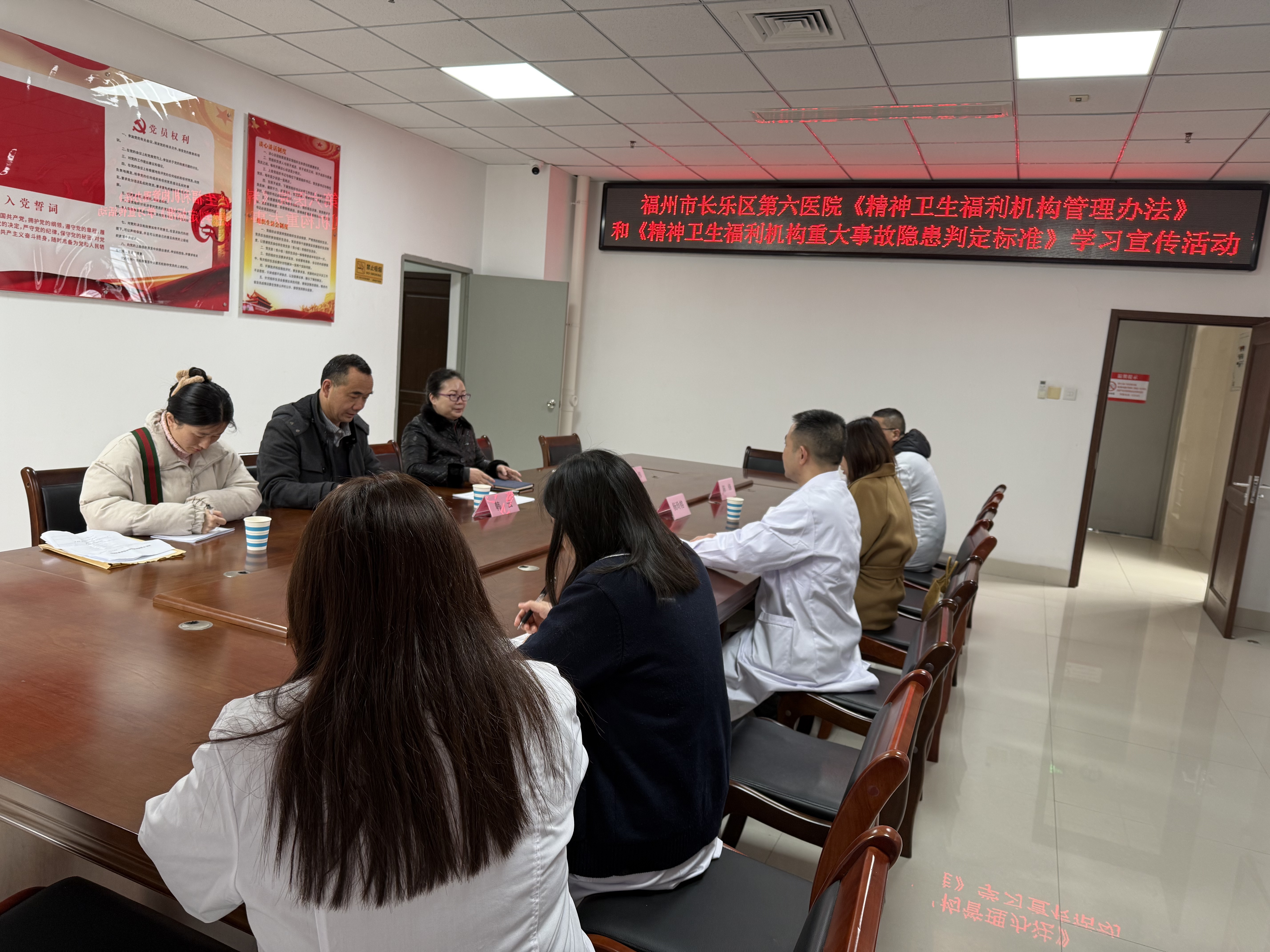4月1日上午,市民政局四级调研员钟秀兰带队,福利慈善处相关人员参加,赴长乐区、福清市局属精神卫生福利机构开展《精神卫生福利机构重大事故隐患判定标准》(以下简称《标准》)和《精神卫生福利机构管理办法》(以下简称《办法》)学习宣传活动,并进行安全生产检查。